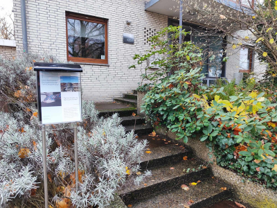 - Wir haben mir einfach mal einen Flyerständer vor das Haus gestellt. Damit das, was hinter der Tür passiert, ein wenig transparenter für die Nachbarschaft wird.